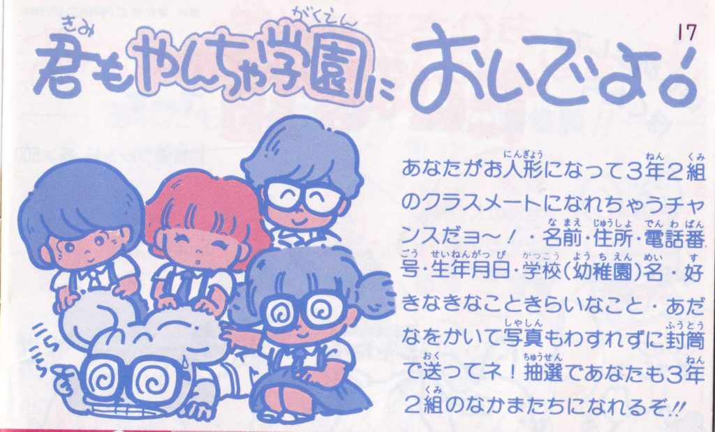 Wai Wai Times vol 6 in 1987 contains a contest to become a character in this franchise. I believe these became the four human characters released later that year.